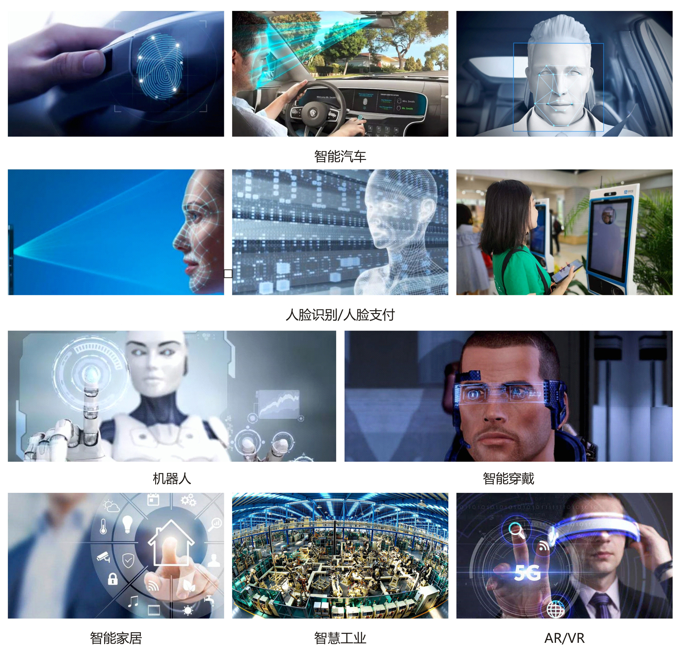 智能汽車 / 人臉識別 / 人臉支付 / 機器人 / 智能穿戴 / 智能家居 / 智慧工業(yè) / AR/VR